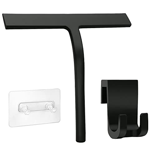 EDATOFLY Duschskrapa, fönsterskrapa glas rengöring silikon duschskrapa med krok skrapa för fönster, duschdörr, glas, spegel, kakel (svart)