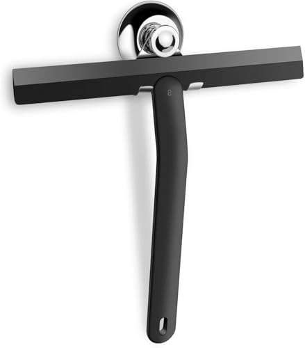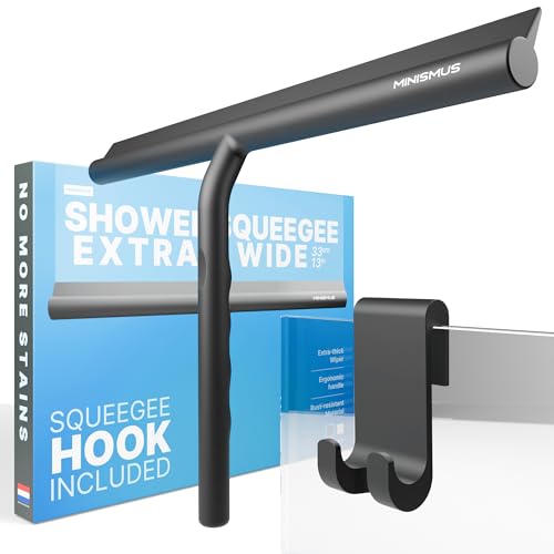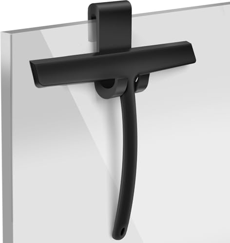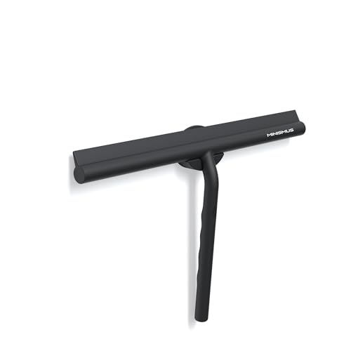 Minism silikonduschskrapa för glasdörrar och fönster – fönsterskrapa badrum och spegel för strålande rena ytor – ingen borrning, inklusive upphängning – duschskrapa (svart, 33 cm)