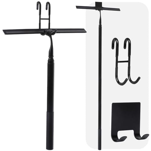 cocofy Duschskrapa med teleskophandtag 43–153 cm lång 35 cm bred, 2 krokar, långt handtag, teleskop, golvskrapa svart, avdragare teleskop, svart