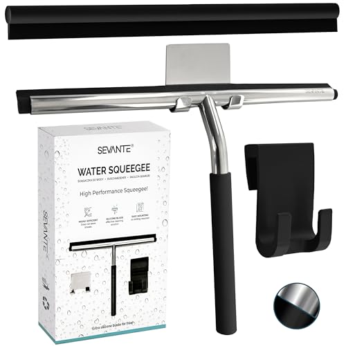 SEVANTE Duschskrapa 25,5 cm – metallfönsterskrapa – badrumstillbehör – avdragare dusch med hållare – spår för dusch, glas och spegel – duschkabinsavdragare – svart