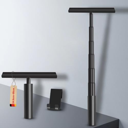 cocofy Duschskrapa med teleskophandtag 43–153 cm lång 25 cm bred, 2 krokar, duschavdragare långt handtag, teleskop golvavdragare svart, teleskop, svart