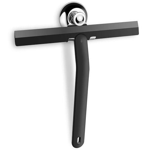Cheerhom Duschdekaler, dusch med sugkoppar i rostfritt stål, duschskrapa silikon för dusch, badrum, spegel, fönster, svart, 25 cm