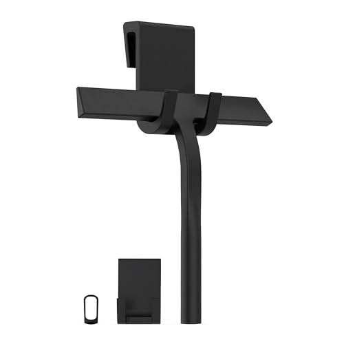 Kincmax allsidiga duschskrapa – rostfritt stål och silikondesign fönster- och duschglasrengörare skrapa – rena duschdörrar kakel speglar fönster – med krok – liten svart