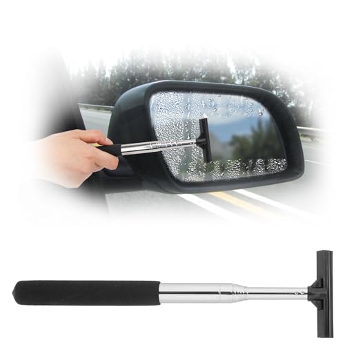 COMNICO Professionell fönsterskrapa för bil, infällbar sidospegel, torkare med 98 cm teleskophandtag, duschskrapa för alla fordon, regnigt dimigt väder (svart)