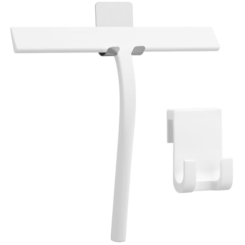 MR.SIGA Duschskrapa i silikon med sugkoppshållare, duschskrapa för spegelfönster duschdörr badrum, Flitsche badrumsskrapa glasskrapa glasrengöringsset, vit & svart