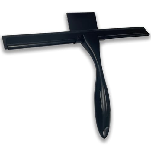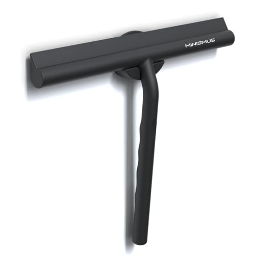 Minism duschskrapa – avdragare för dusch, badrum, kakel, speglar, fönster – inkl. magnethållare utan borrning, självhäftande – modern design i ädel (33 cm, svart)