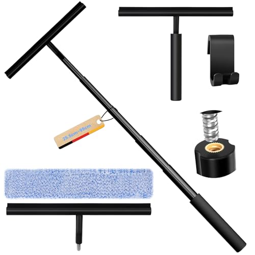 MICHIHOMIE Duschskrapa Svart långt Skaft, Duschskrapa med 140cm Teleskopstång, Vattenskrapa Silikon för Golvskrapa, Fönsterskrapa, Badrumsskrapa, med Hållare utan Borrning, Trasor