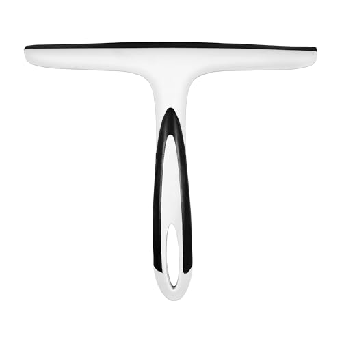 Kincmax allsidig duschskrapa – rostfritt stål och silikondesign fönster- och duschglasrengörare skrapa – rena duschdörrar kakel speglar fönster – med krok – medium svart