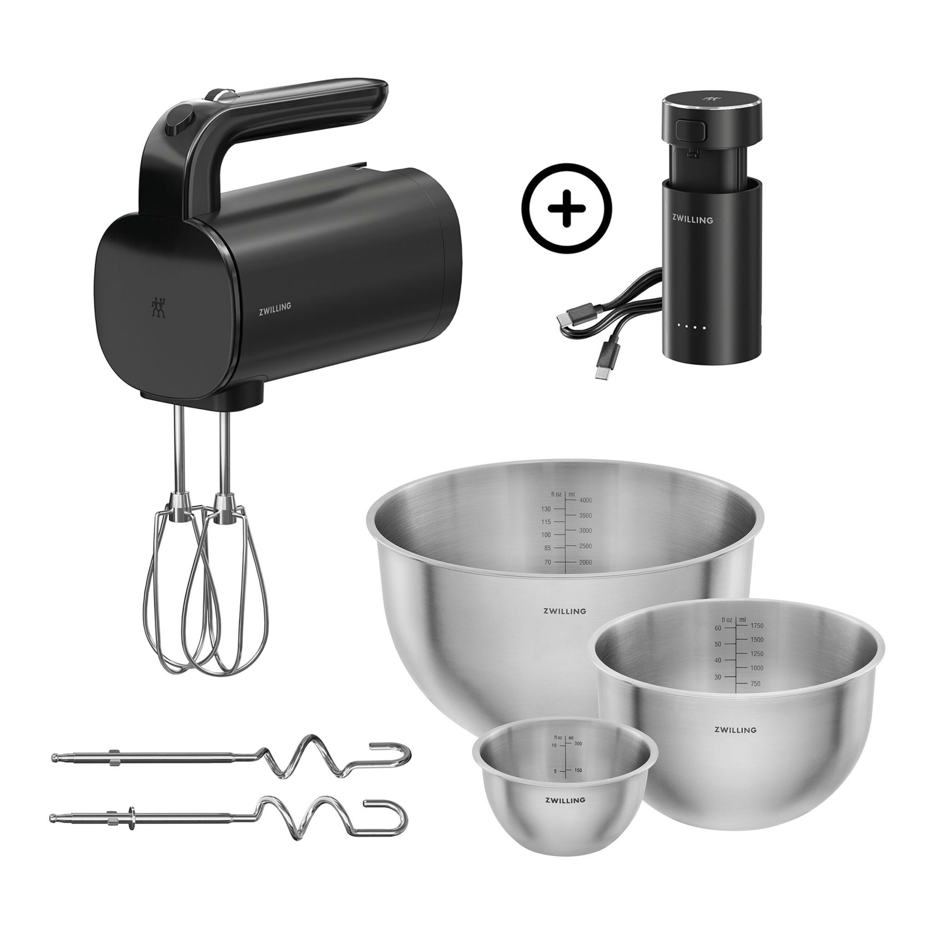 ZWILLING XTEND Startset - sladdlös elvisp med laddningsstation och skålset, 7 delar, svart, rostfritt stål