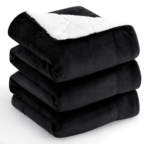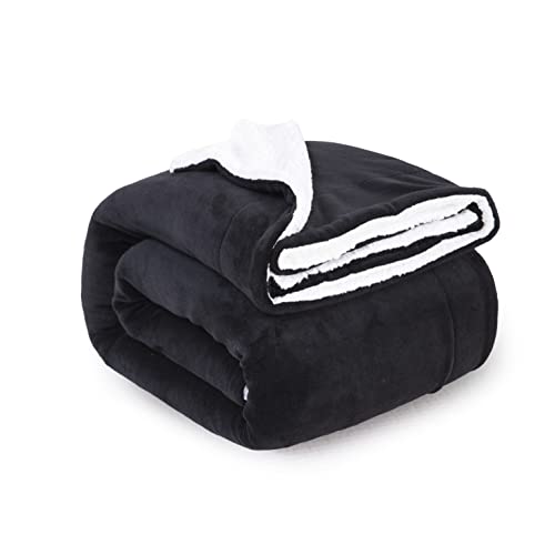 ComfyWell Sherpa fleecefilt, mjuk och mysig – överkast, stor fluffig filt för soffa, säng, resor, tjock termisk varm sängfilt 150 x 200 cm. (tvilling/dubbel, svart)
