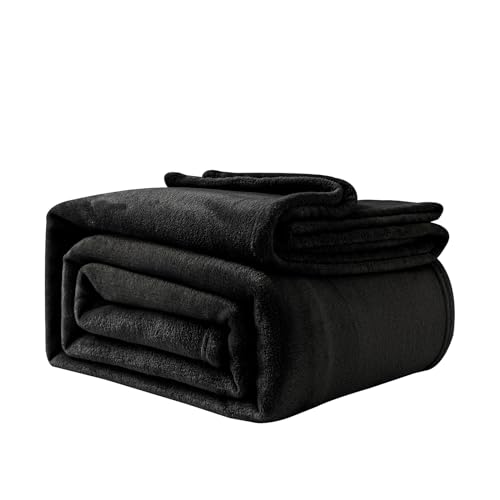 Good Nite fleecefilt fluffiga överkastfiltar 130 x 150 cm flanell varmt mjukt överkast för soffa överkast (svart, enkel)
