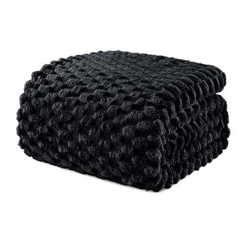 Exclusivo Mezcla Dubbel storlek, flanell, fleecefilt, supermjuk 3D-randig jacquard, sängfilt, lätt luddig, mysig filt för alla årstider, 150 x 200 cm, svart filt
