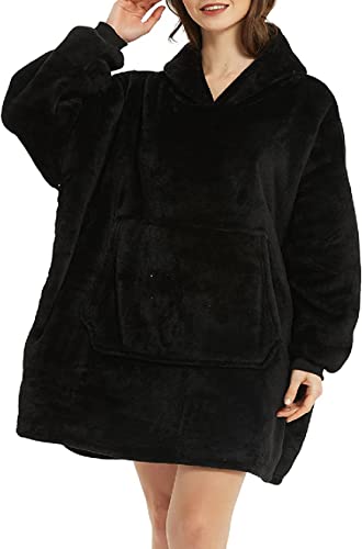 JOJJJOJ överdimensionerad huvfilt med gigantisk ficka, bekväm sherpa, fleecefilt, huvtröja, varm sweatshirt, rock för kvinnor, män, tonåringar, present, Svart universum