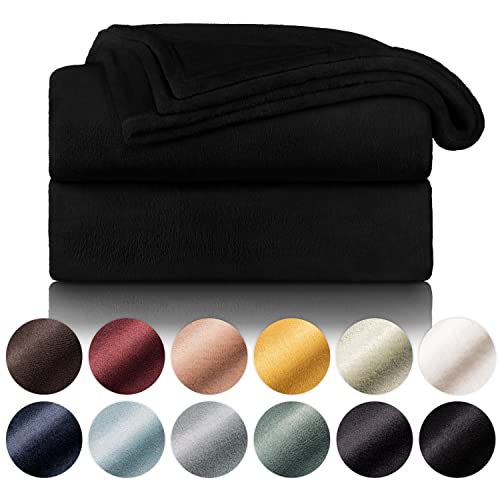 Kono Sherpa fleecefilt 150 x 200 cm, mjuk mysig fluffig vändbar mikrofiber solida filtar för säng soffa soffa (svart, tvilling/dubbel)
