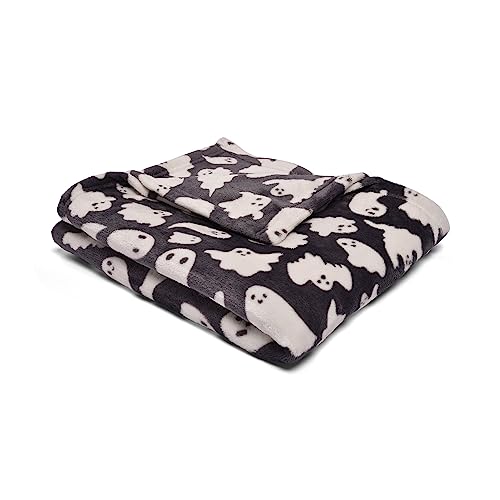Bedlam – halloween spöken fleecefilt (120 x 150 cm) – supermjuk och mysig fleece i svart – svart läskigt spöke filt – halloween filtar och överkast (mysig) – halloween dekorationer
