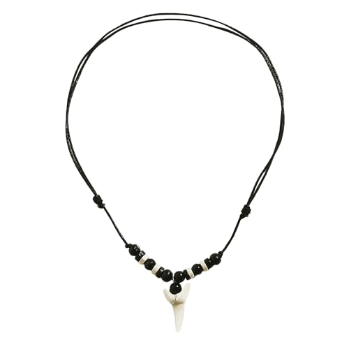 NYGGTYK 1 st hajtandshalsband, surfarhalsband, halsband med träpärlor, fashionabla vintage-hänge, herr-berlockhalsband, avslappnat stilsmycke, die Anhängergröße beträgt 2 * 3,5 cm, Vaxtråd, träpärlor,