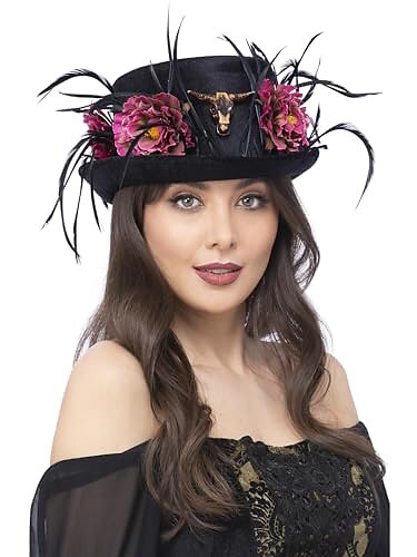 Hög Hatt Svart Blommor och Fjädrar
