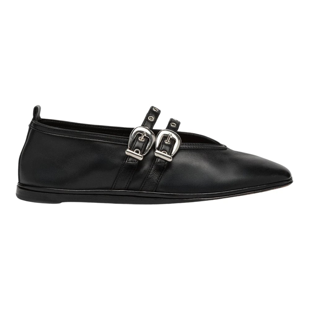 Elia Maurizi, Skor , Dam, 42 EU, Läder, Svart läder ballerina sko med dubbel hink