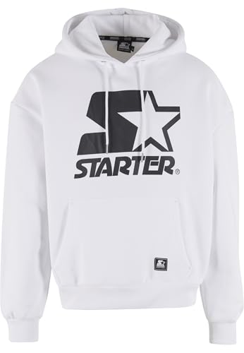 Starter black label herr huvtröja överdimensionerad logotyp hoodie, avslappnad herr huvtröja med startlogotyp, storlekar S – XXL, Vit, S