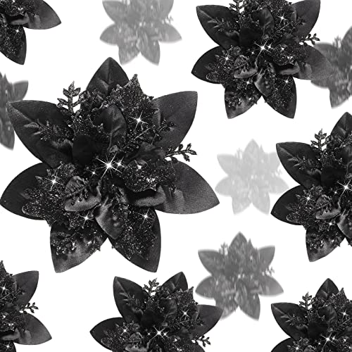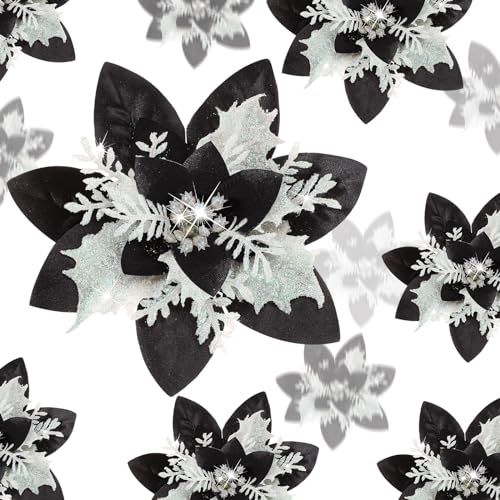 Boao 24 delar julglitter julstjärna blommor konstgjorda julblommor bröllop julgran nyår prydnader (svart)