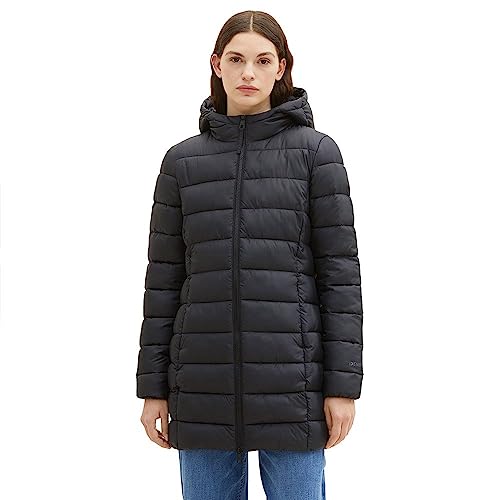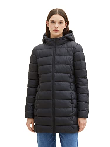 TOM TAILOR Denim dam denim lätt quiltad kappa med huva, 14482-djup svart, XS