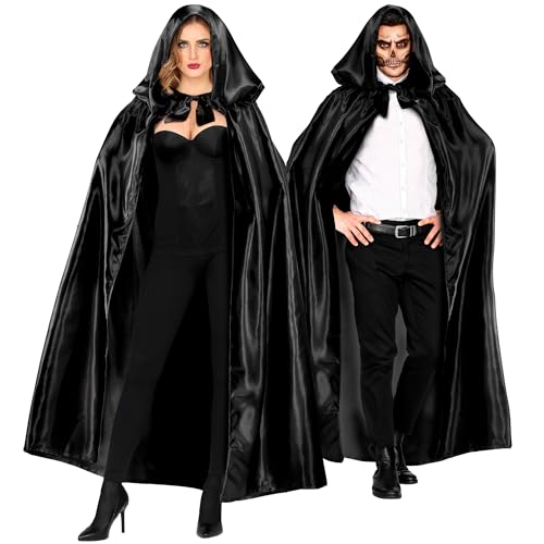 TK Gruppe Timo Klingler-kappa, svart med huva – vampyrdräkt – för halloween och karneval och karneval för barn och vuxna, båda sidor (svart)
