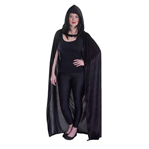Bristol Novelty AC749 sammet svart kappa med huva vuxen cape (en storlek)