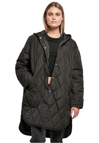 Urban Classics Damer överdimensionerad diamantquiltad kappa med huva, svart, XL, svart, XL