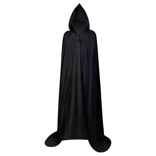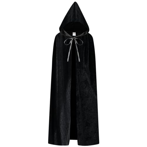 YIHELU Halloweenslängkappa med huva, lång halloweenmantel i svart sammet, unisex, kappa för vuxna och barn, för cosplay, fest, halloween, maskerad, vampyrkostym (L)