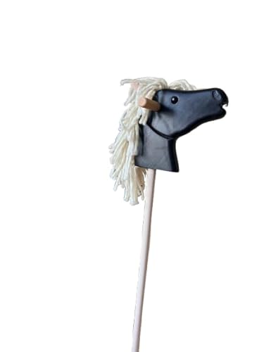 SKIPPI Käpphäst Svartskäck, Stor Hobbyhäst A3, Häst med Träns och Tyglar Ingår, Skäckig, Fläckig Häst, Svartvit, Present för Flickor, Hobbyhästning, Pinnehäst, Hobby Horsing, Hobby horse