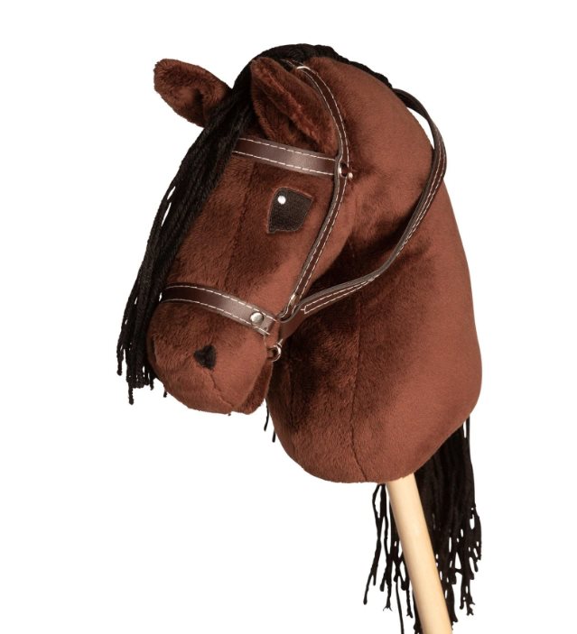 HKM Hobby Horse – käpphäst svart/vit, avtagbar träns och lång mane, 40 cm trähandtag – för hobbyhämmande dressyr och parcours
