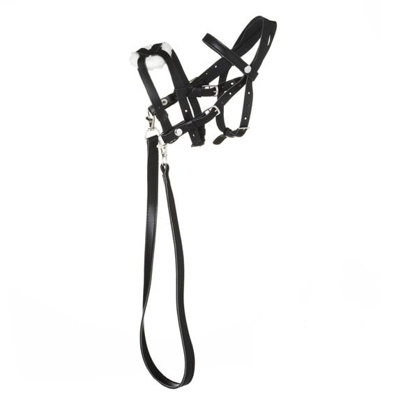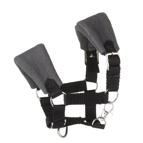 Svart och mörkgrå fleecefodrad grimma till käpphäst & hobby horse