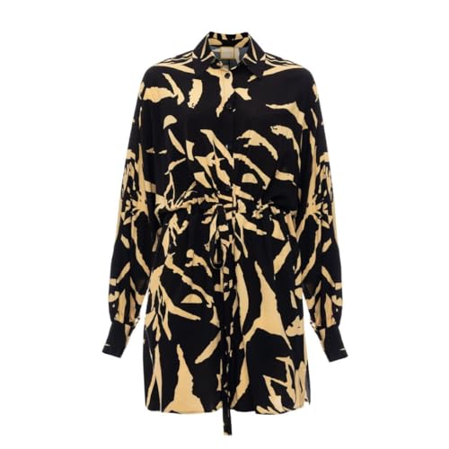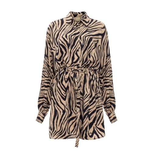 Swing Fashion svart kimono-klänning med svart och beige tryck bari | Storlek XS/S | Elegant klänning med bälte, Beige, XS