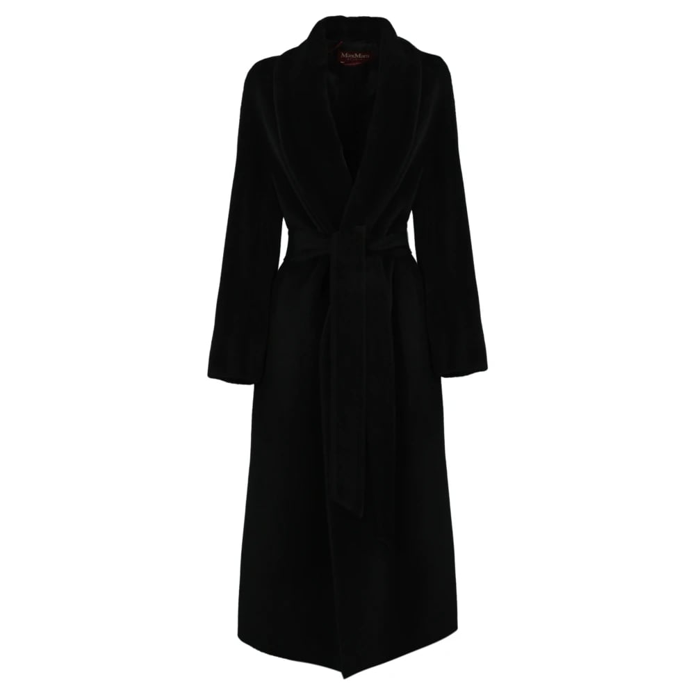 Max Mara Studio, Kappor & Rockar , Dam, S, Svart Alpacka Ull Kimono Kappa