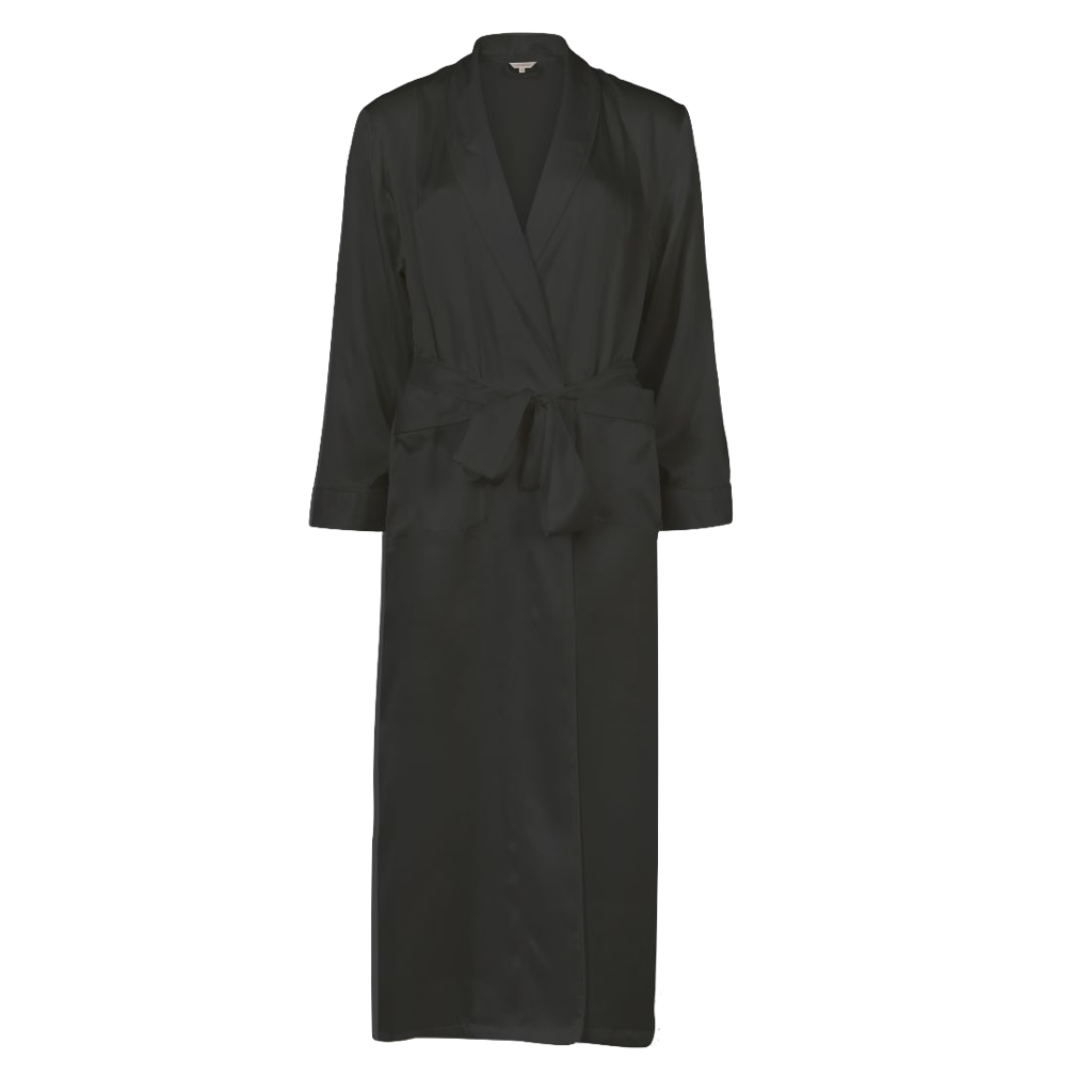Lady Avenue - Pure Silk Long Robe & Kimono Black XS - Kvinnligt Under