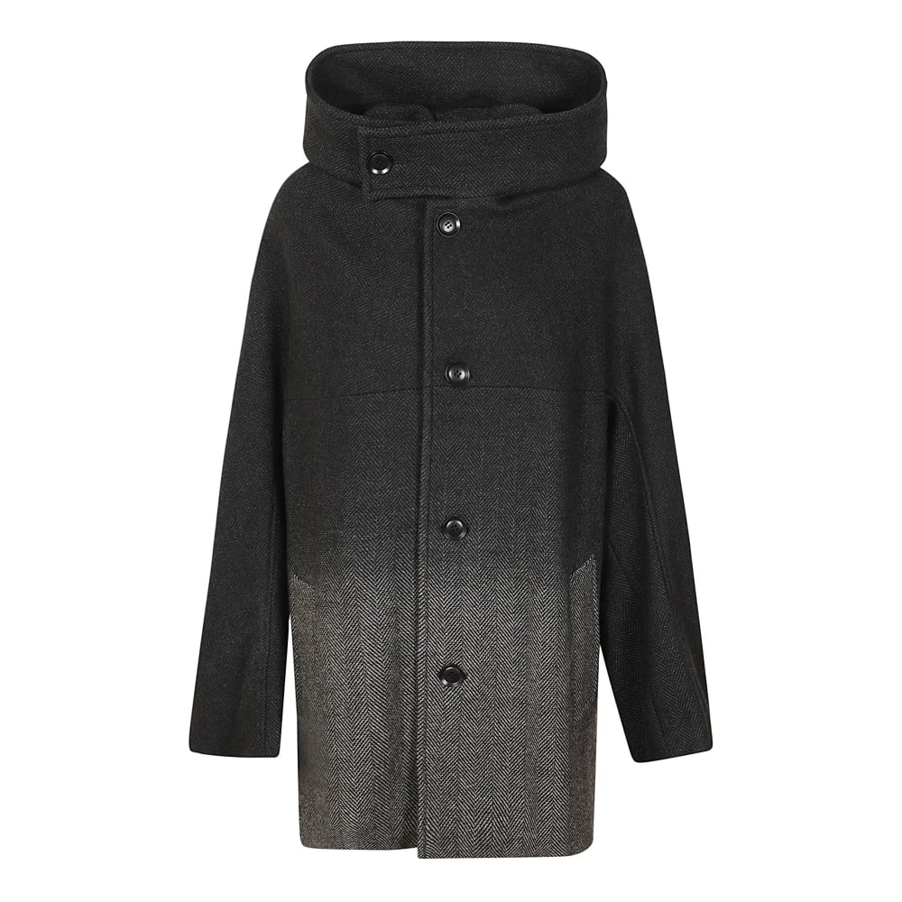 Yohji Yamamoto, Kappor & Rockar , Dam, M, Polyester, Svart Ullblandning Kimono Ärm Hoodie