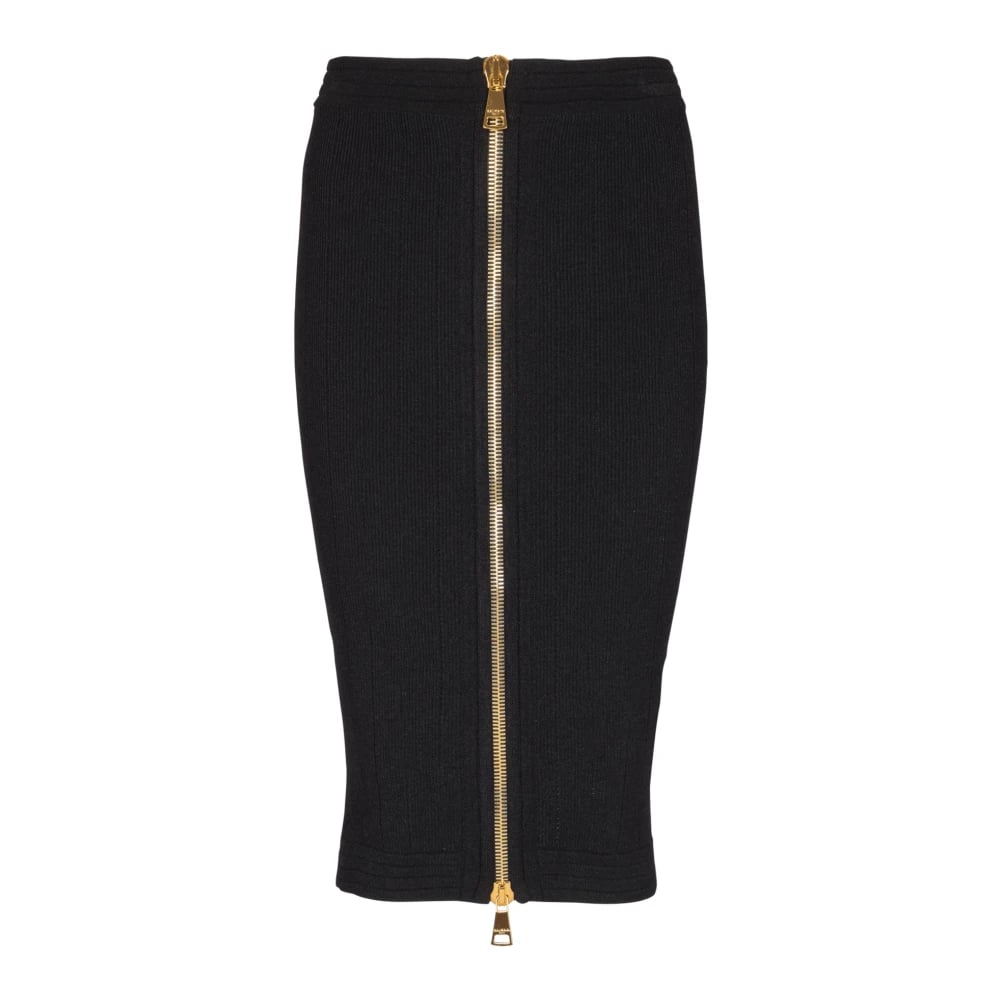 Balmain, Kjolar , Dam, 2Xs, Polyester, Ribbstickad, knälång kjol med dragkedja