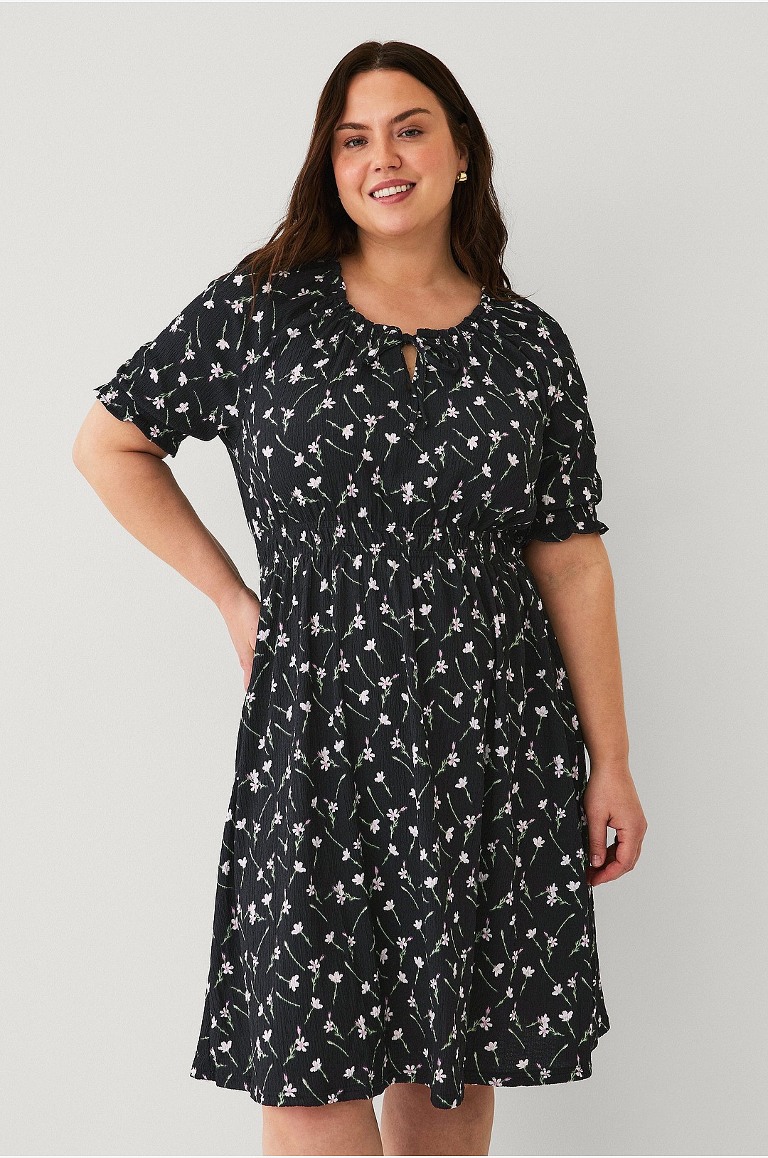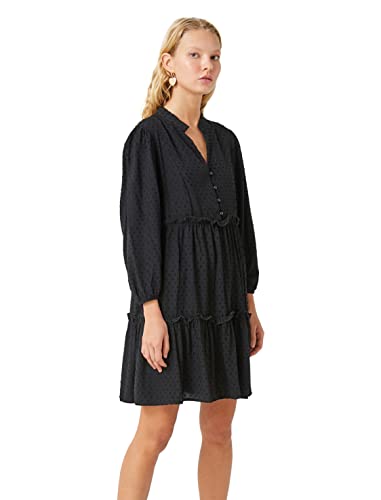 Koton Klänning med puffärm för kvinnor ruffle näsduk, Svart (999), 34