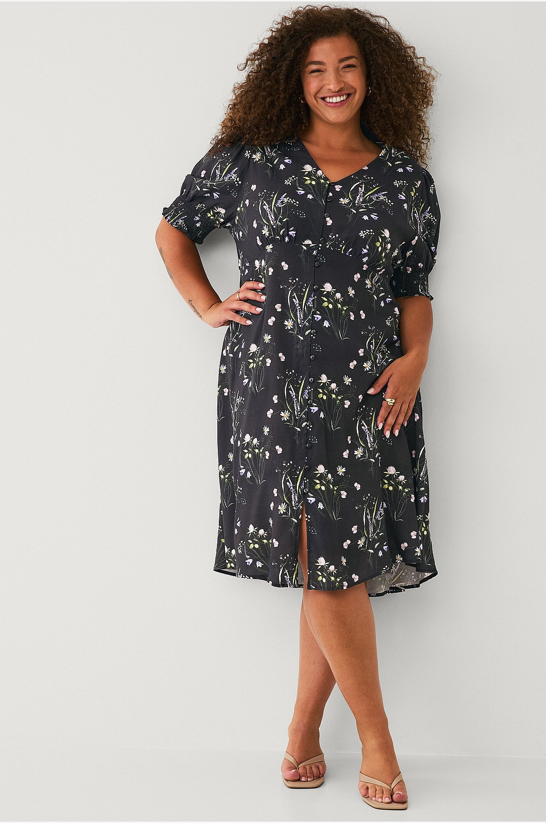Ellos Plus collection - Klänning Med Puffärm - Svart