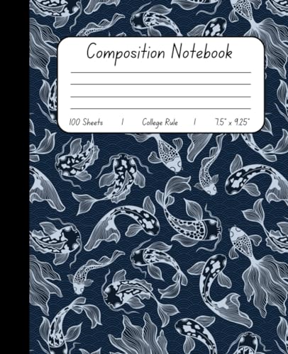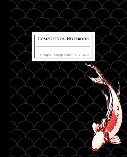 Composition Notebook 100 pages college-ruled 7.5 x 9.25 in: Koi Fish on Black Design