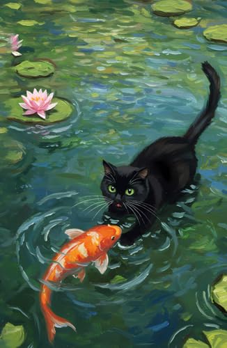 Koi Curiosity – Black Cat in Water Garden Journal | Cute Writing Journal for Cat Lovers & Art Enthusiasts: Lined Notebook with Cream Pages, 5.5 x 8.5 in
