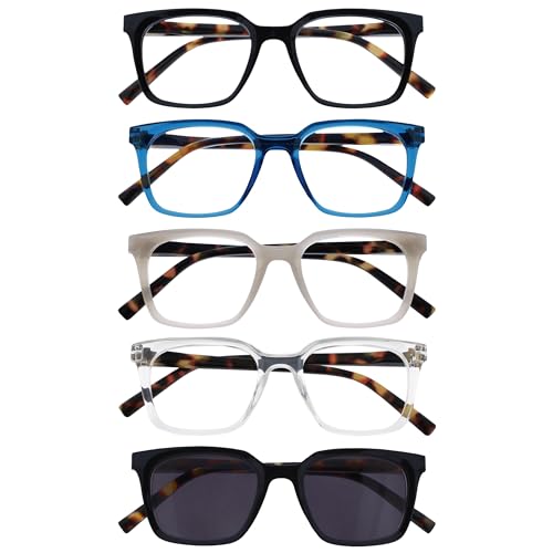 OPULIZE KOI läsglasögon med solläsare 5-pack - rektangulär ram - svart-blå-grå-klar-svart - herr dam - fjädergångjärn - RRRS50-137C1-3,00