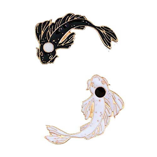Uppsättning av 2 söta fiskar emalj slag pin set tecknad Koi brosch märke för klädväskor ryggsäckar svart vit färg, Akryl