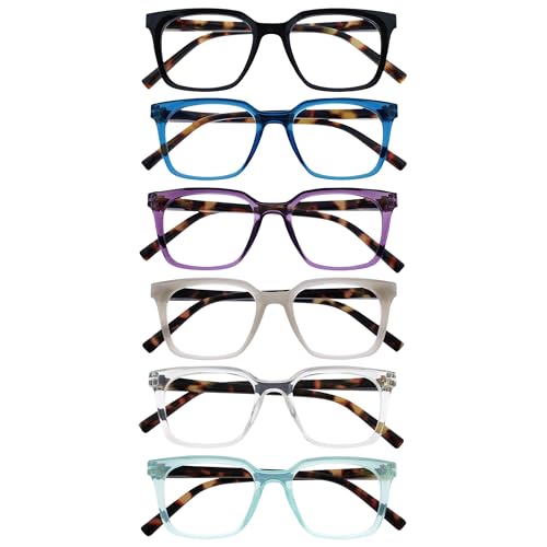OPULIZE KOI läsglasögon 6-Pack - Stor Rektangulär Ram - Svart-Blå-Lila-Grå-Klar-Aqua - Herr, Dam - Fjädergångjärn - RRRRR50-1357CQ - 2,50