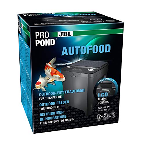 JBL automatisk foderautomat för Koi och andra dammfiskar, ProPony Bilfood, väderbeständig, sol, 37,5 x 37,5 x 46,2 cm, svart