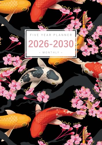 Five Year Planner 2026-2030: A4 Monthly Notebook Organizer Large | Koi Fish and Sakura Flower Design Black
