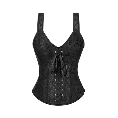 LSYHHXC korsett toppar för kvinnor kvinnor korsett med remmar svart överbyst korsett plus storlek blommig jacquardkorsett dragkedja topp steampunk korsett 49, Svart 2, XS
