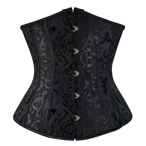 SHEKINI Korsett för kvinnor, magkontroll, korsett, bustiers, underbyst, midjeband med tanga, jacquardcrop topp, gotisk vintage, korsett, kroppsformare topp, Svart jacquard, 5XL