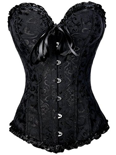 ZPFDSG Korsett-topp för kvinnor, sexiga korsetter, bustier, blommig spetstopp för kvinnor, blommönster, korsett, underkläder i vintagestil, satin, överbyst-korsett, plusstorlek (färg: svart, storlek: