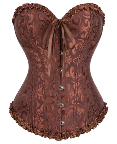 KUOSE Dam svart baskisk kroppsformare överbyst korsett topp plus storlek S-6XL, Brun, 4-6